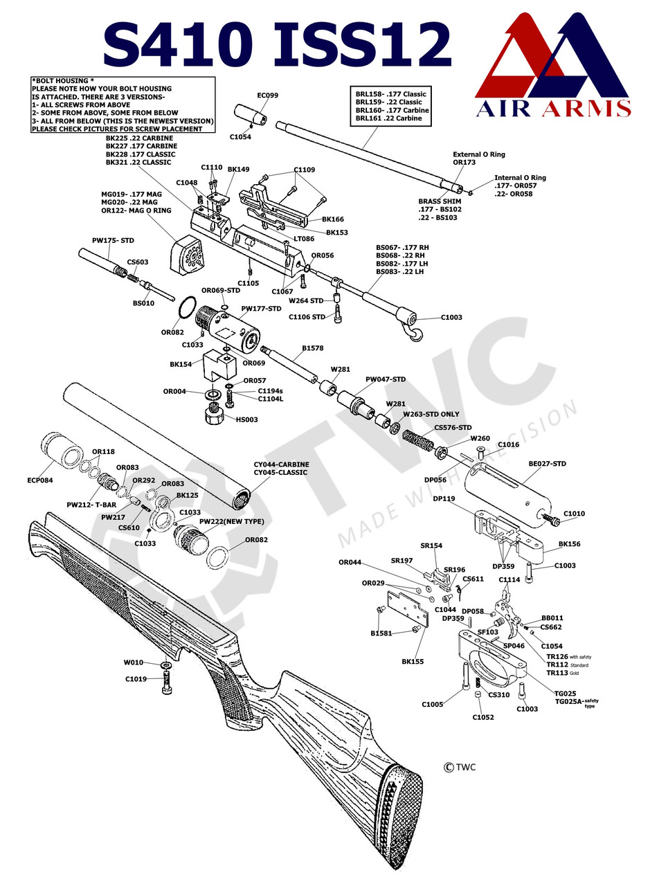 BRL158 Barrel AirArms S400/S410/S510 FAC .177 - Classic. O rings not supplied