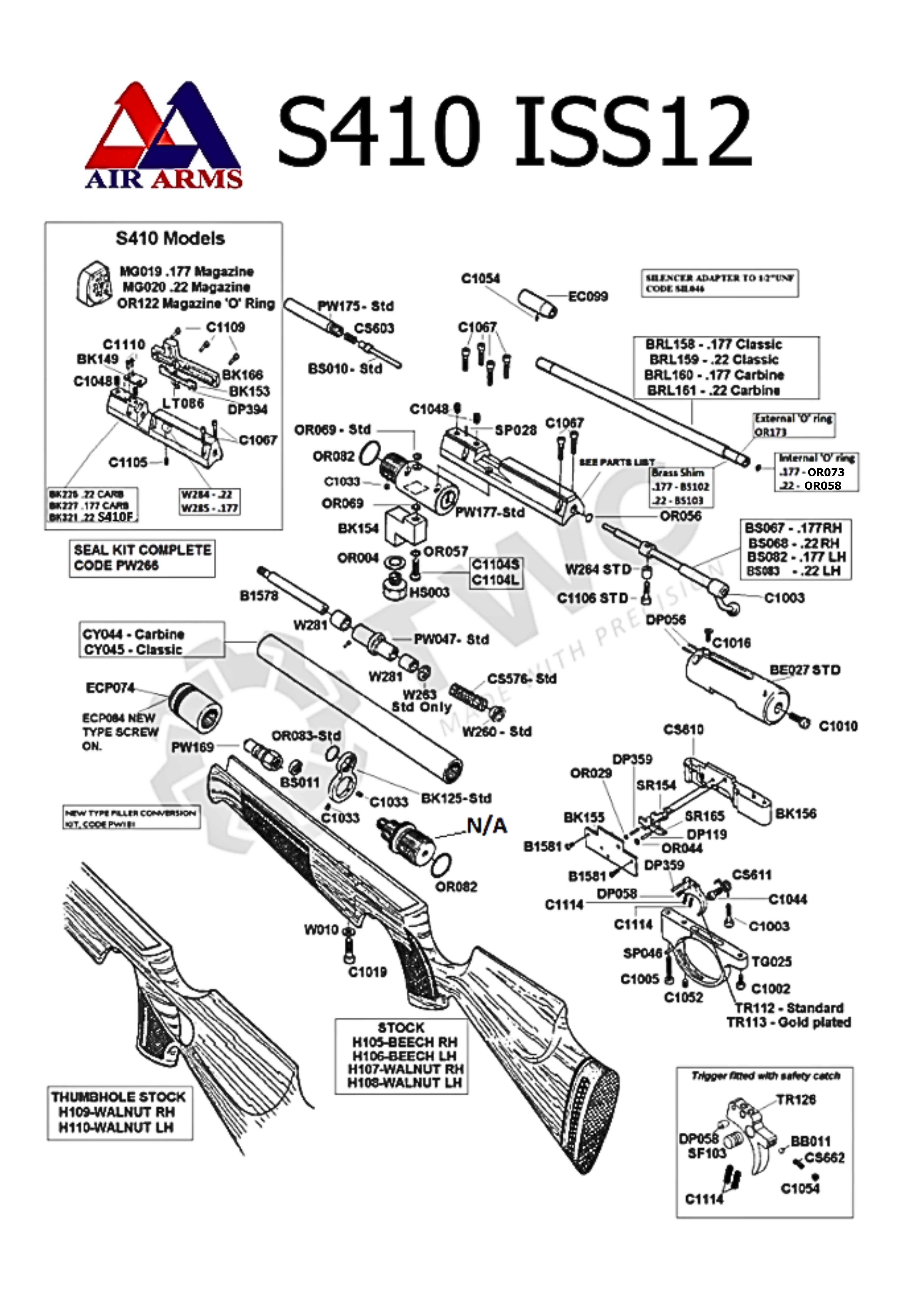 BRL160- Air Arms S400, S410 & S510 Barrel .177 - Carbine