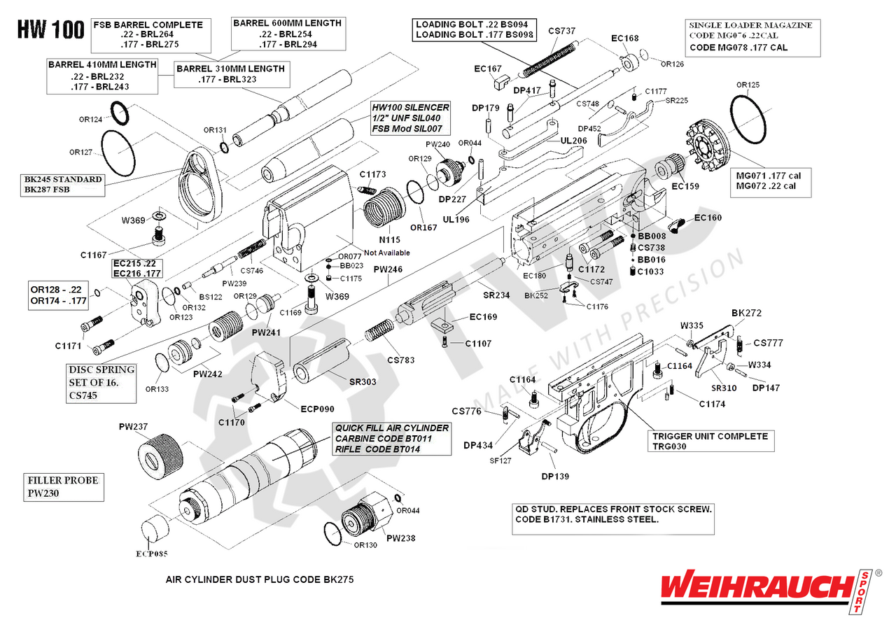 BRL243 - HW100 T .177 barrel, 410mm long.