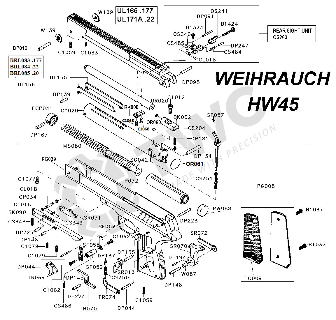 BRL085 -Weihrauch HW45/ Beeman P1 and P1 Magnum Barrel .20