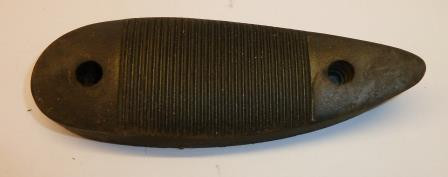 Small black recoil pad, 113mm heel to toe, 75mm between hole centers, 39mm wide at widest part, all measurements are approximate.